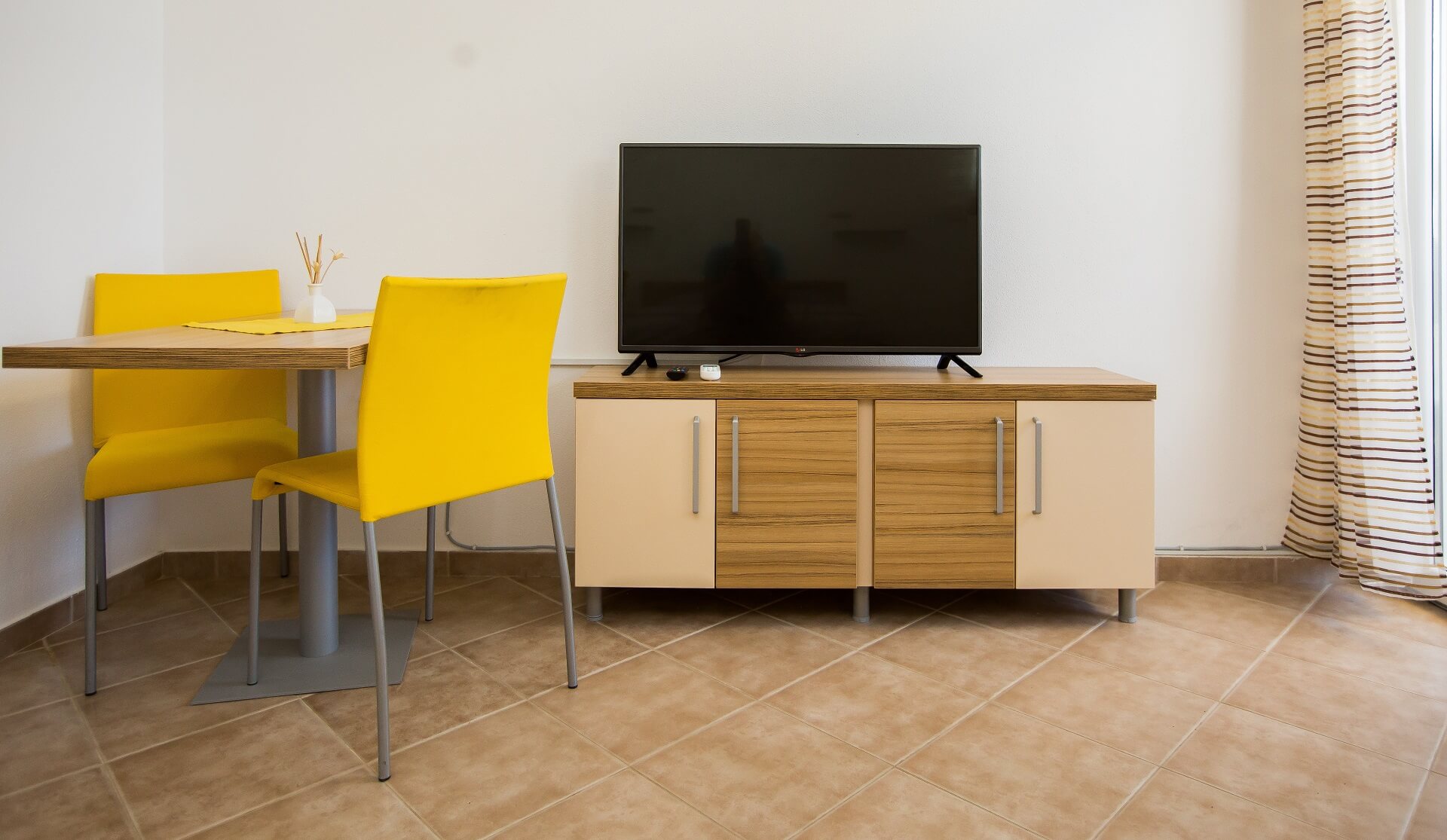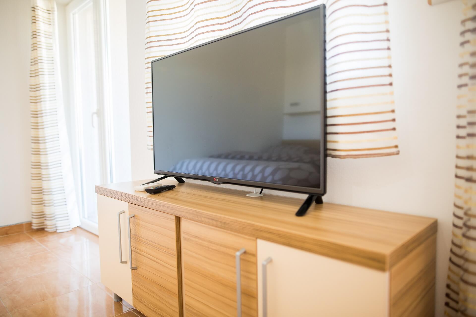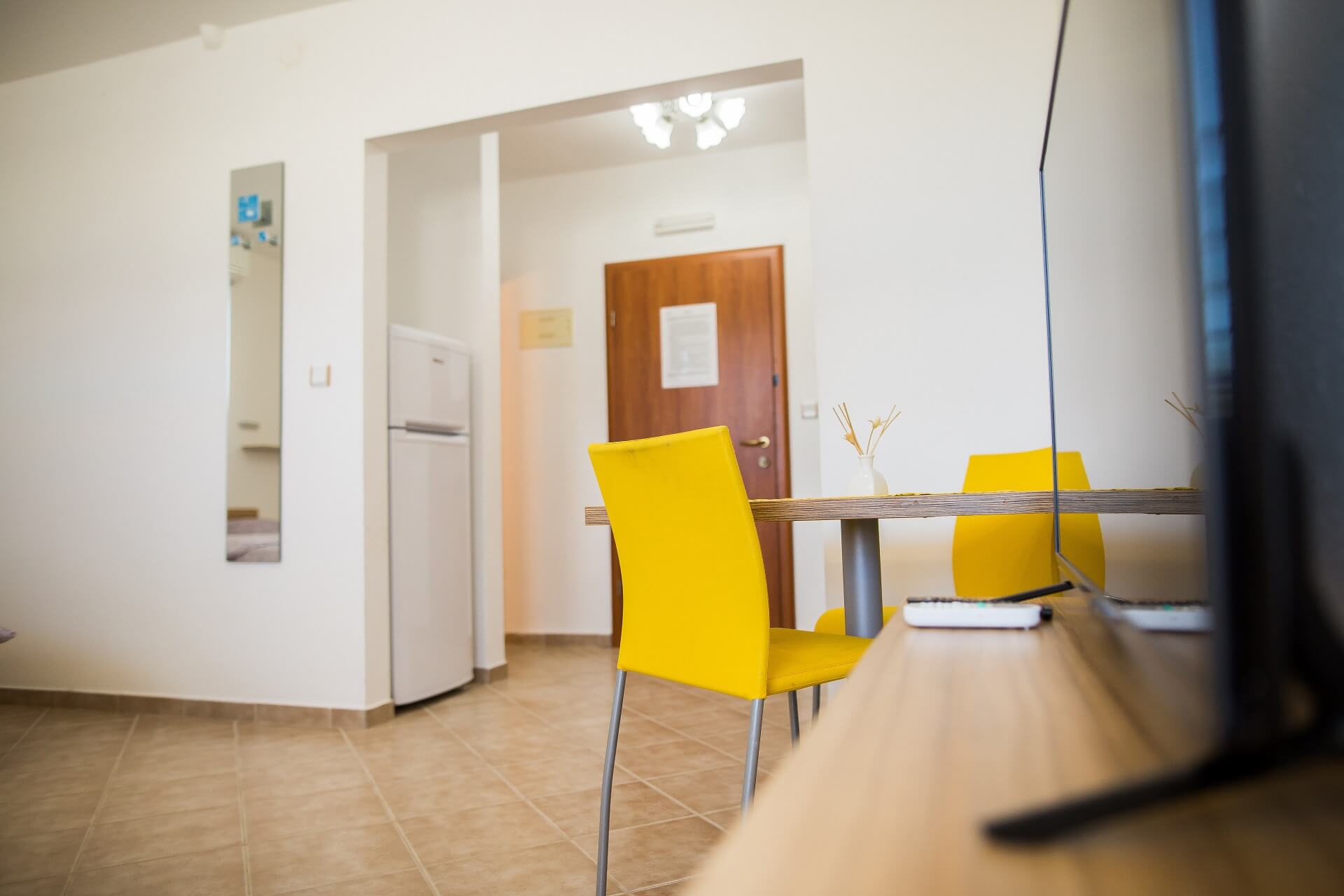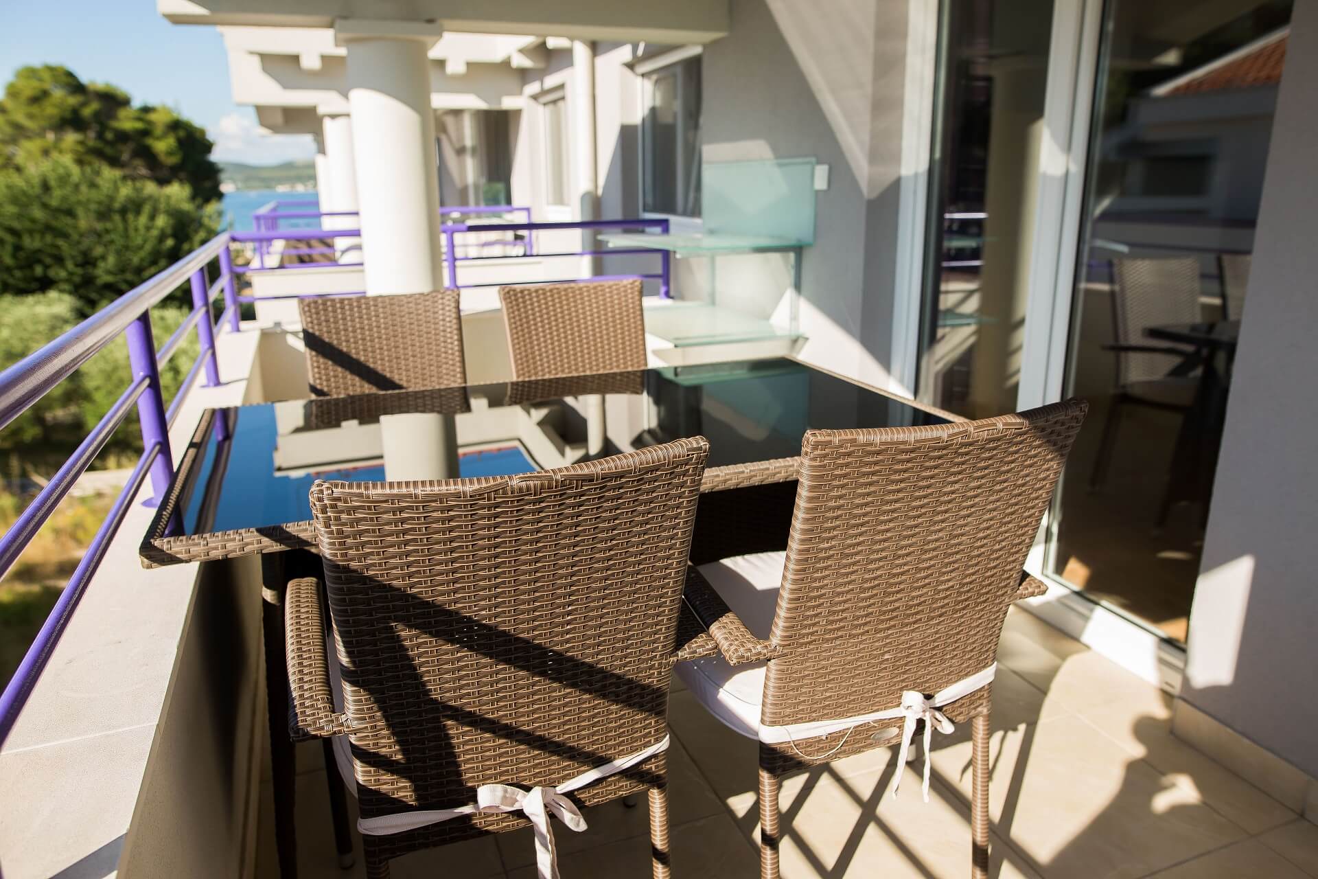 Vsak apartma ima svojo zasebno pokrito teraso s pogledom na morje, kabelski TOTAL TV priključek, brezplačni Wi-Fi, zagotovljeno parkirišče za osebno vozilo.