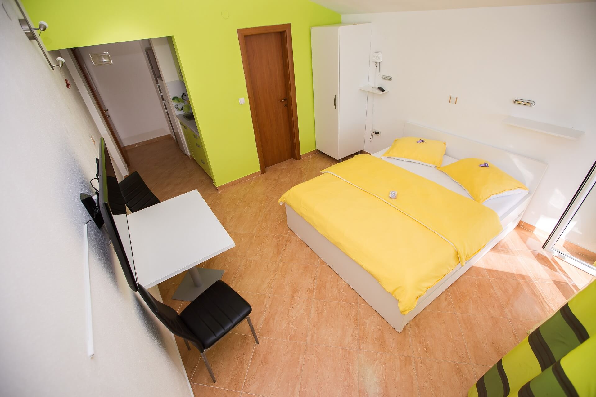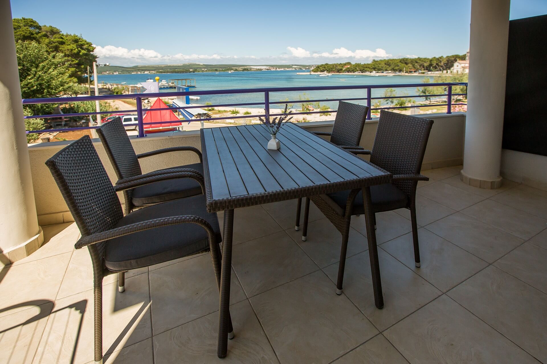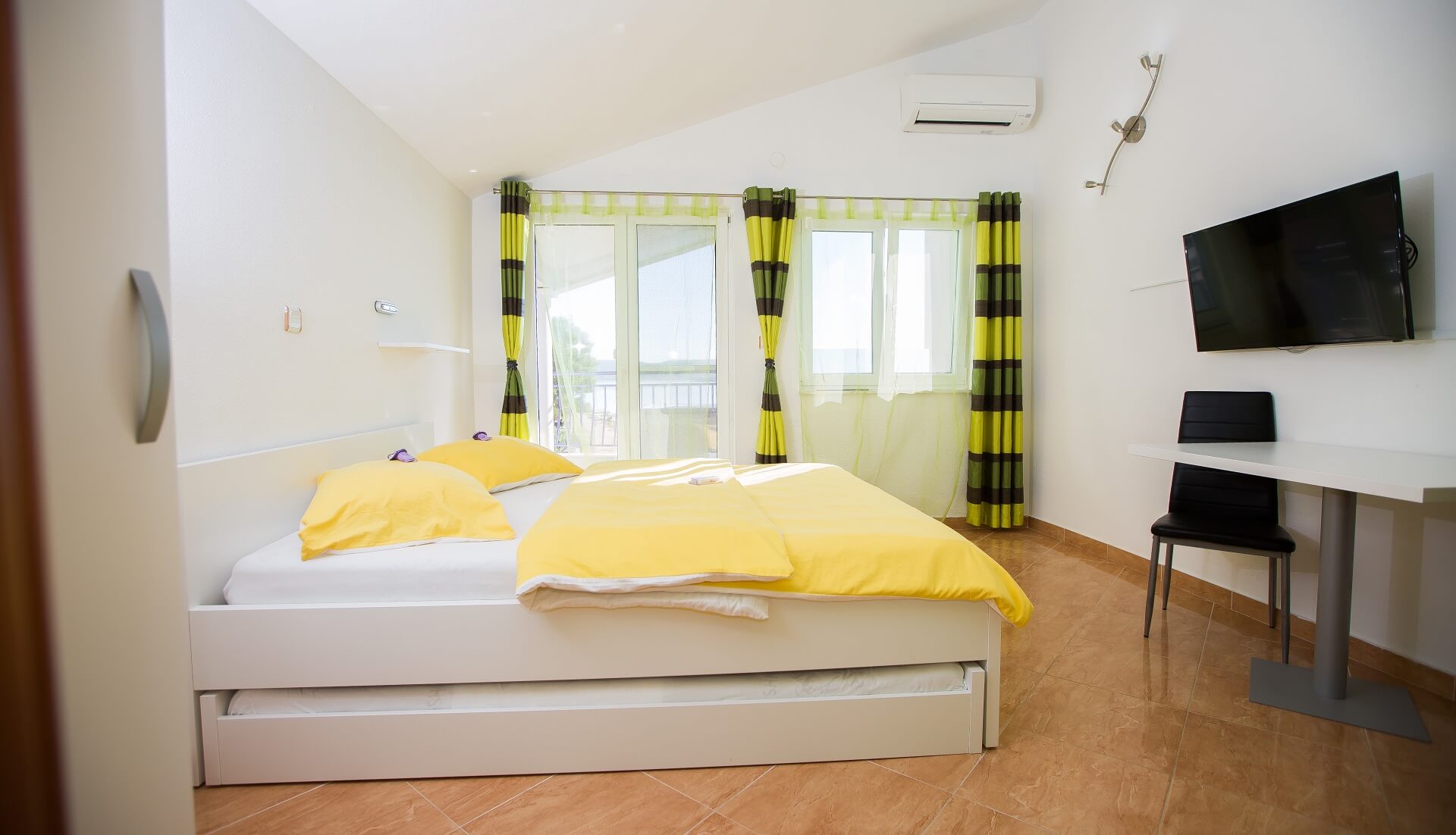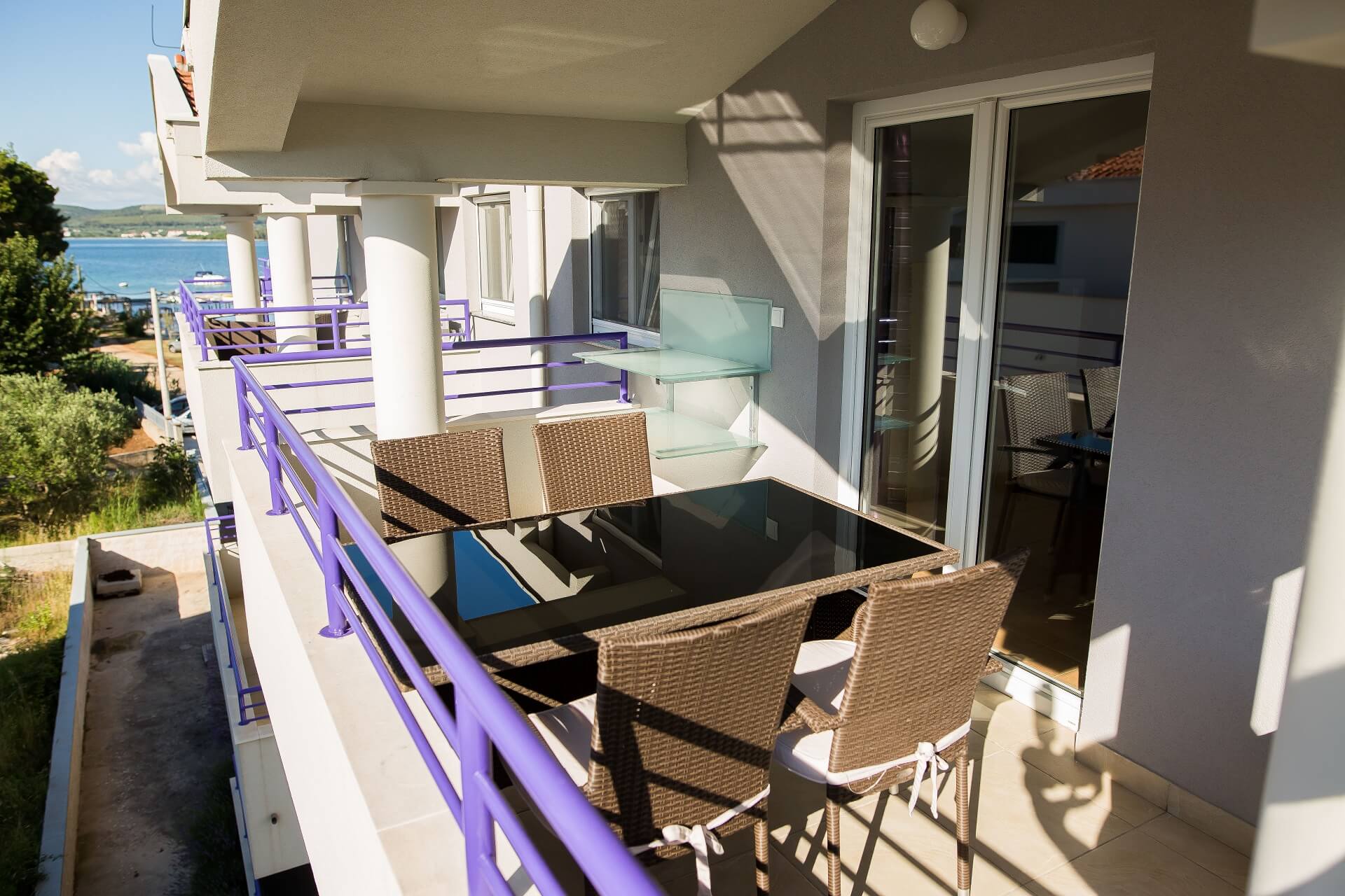 Vsak apartma ima svojo zasebno pokrito teraso s pogledom na morje, kabelski TOTAL TV priključek, brezplačni Wi-Fi, zagotovljeno parkirišče za osebno vozilo.