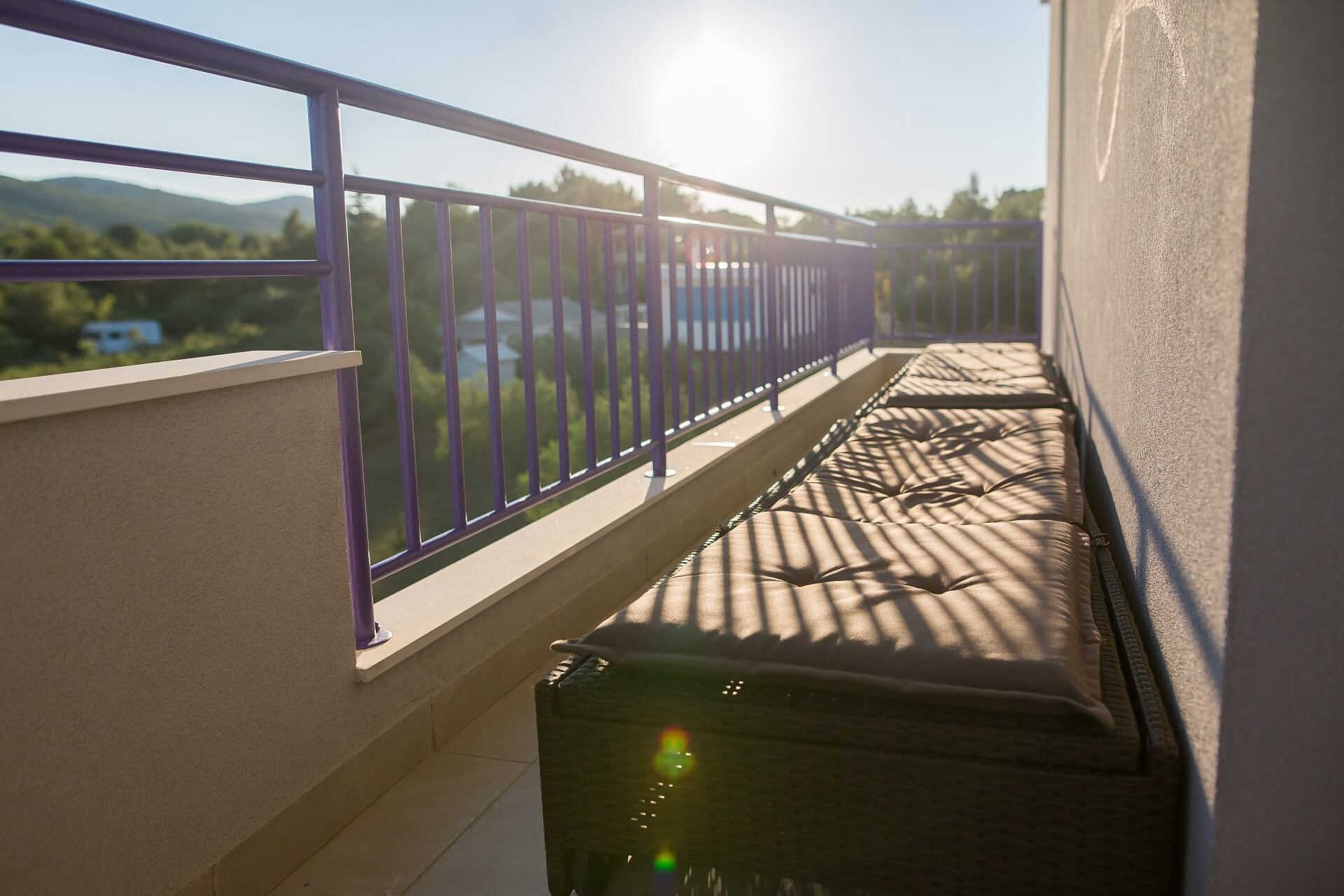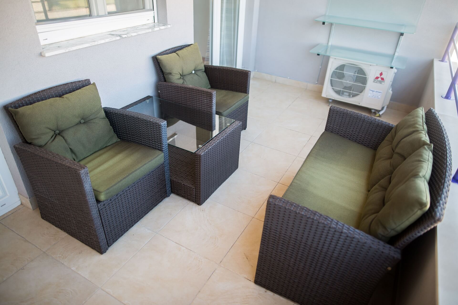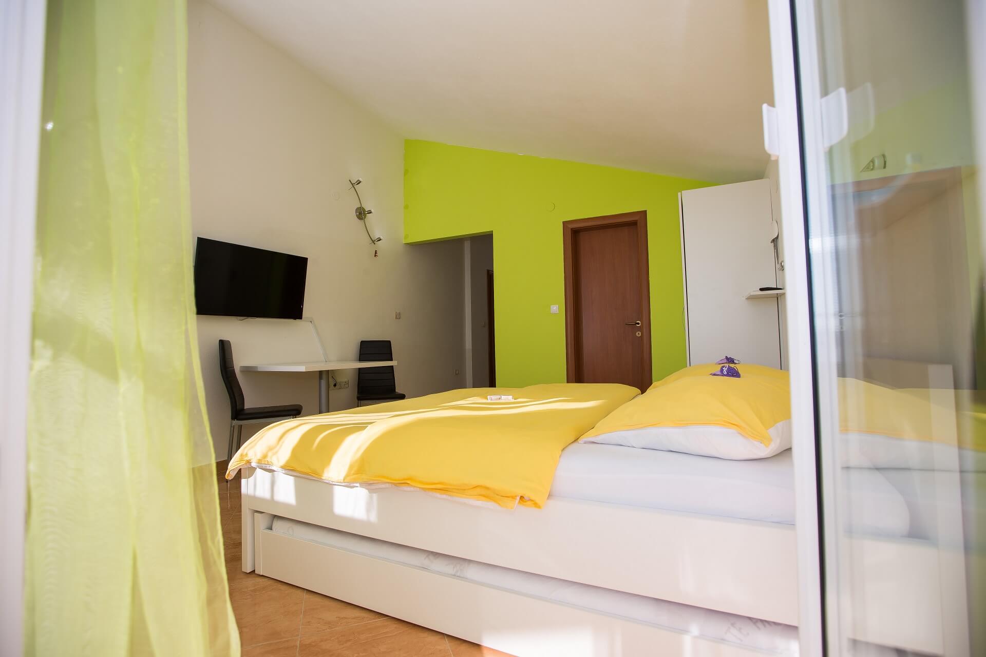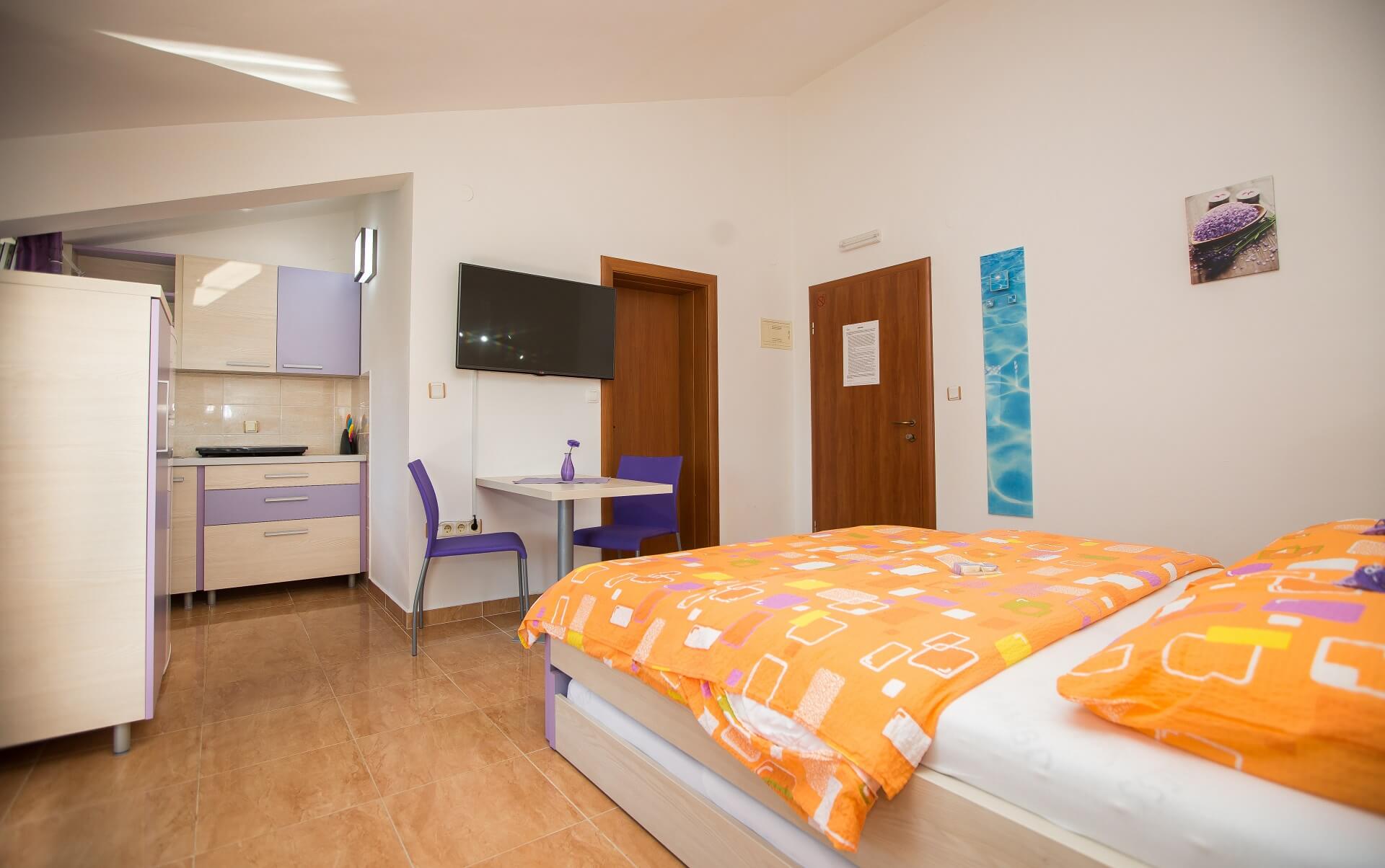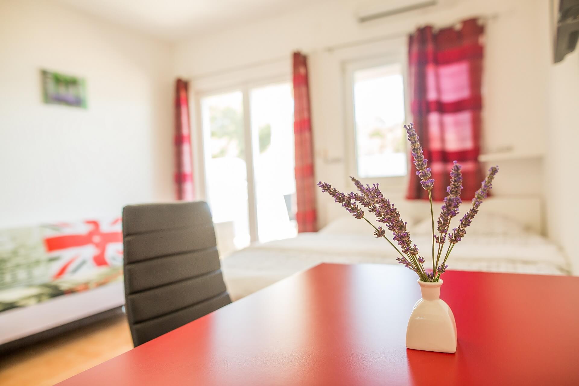 Vsak apartma ima svojo zasebno pokrito teraso s pogledom na morje, kabelski TOTAL TV priključek, brezplačni Wi-Fi, zagotovljeno parkirišče za osebno vozilo.