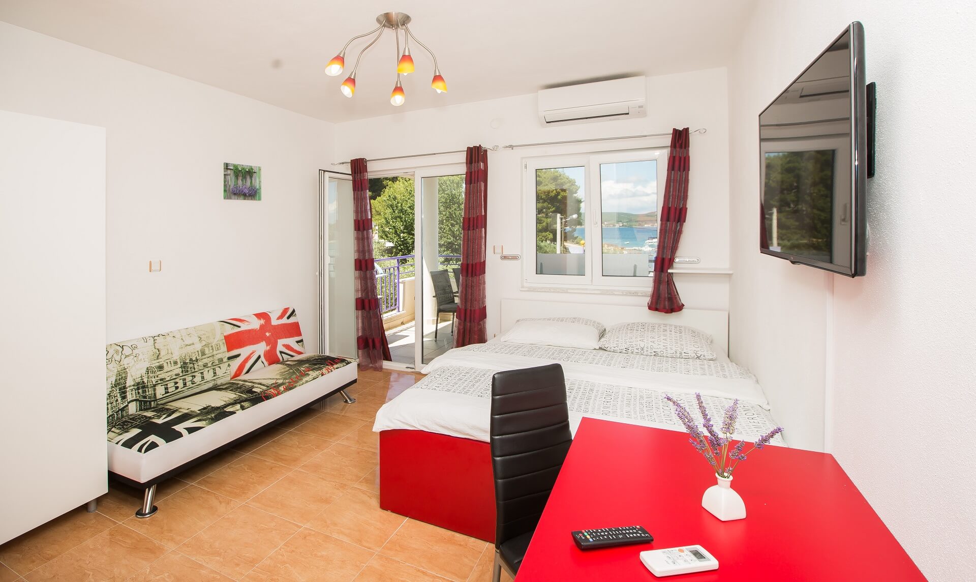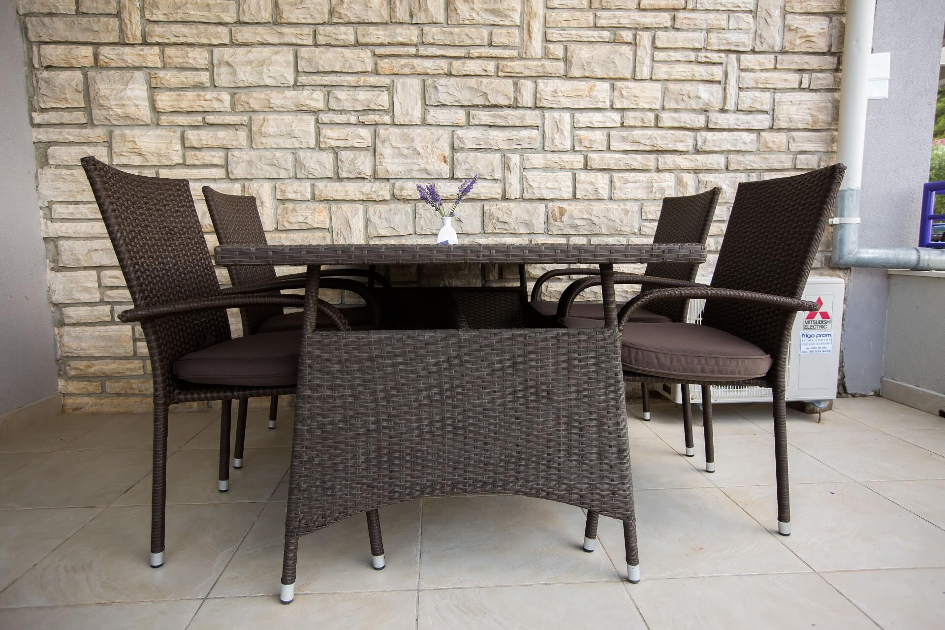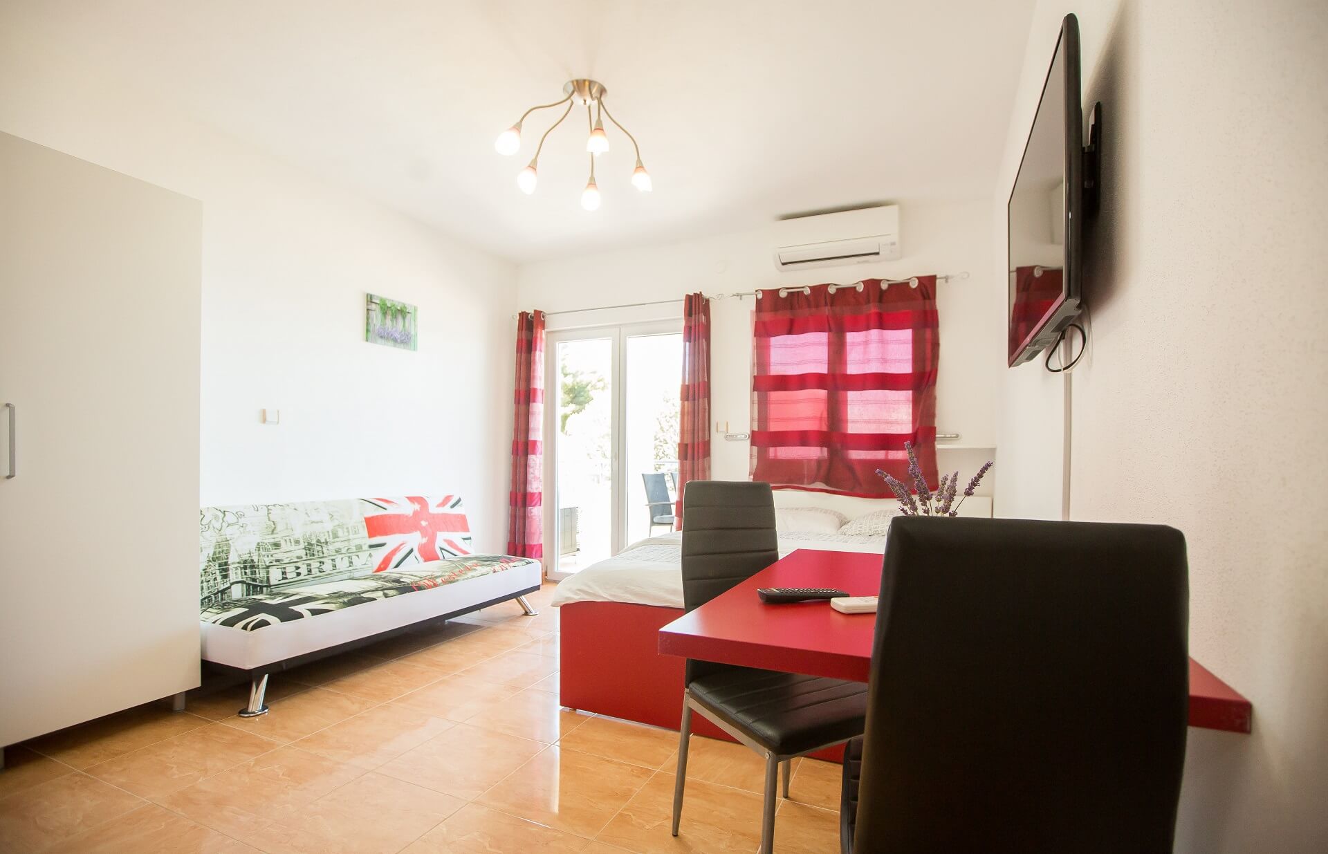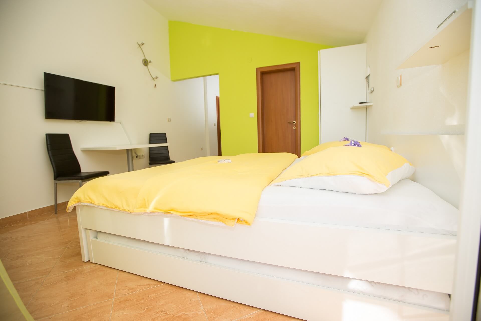 Vsak apartma ima svojo zasebno pokrito teraso s pogledom na morje, kabelski TOTAL TV priključek, brezplačni Wi-Fi, zagotovljeno parkirišče za osebno vozilo.