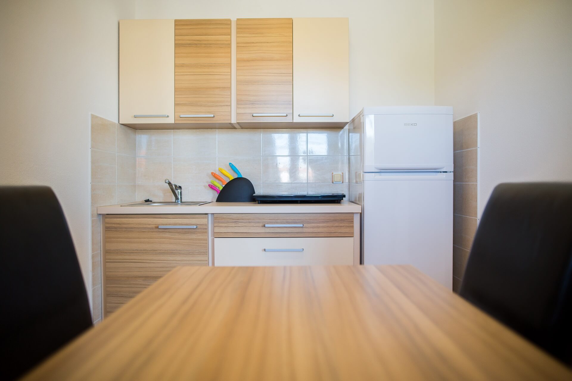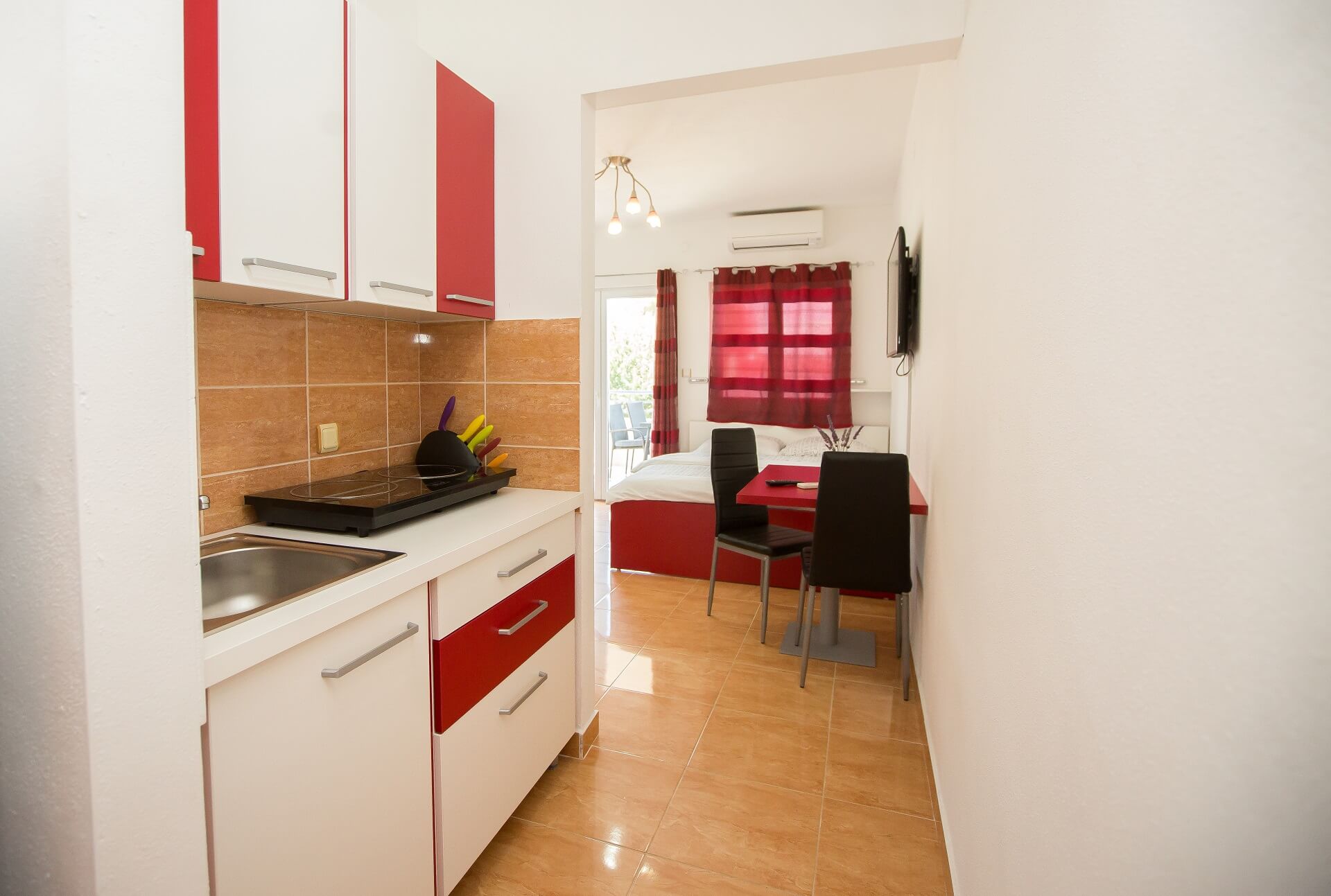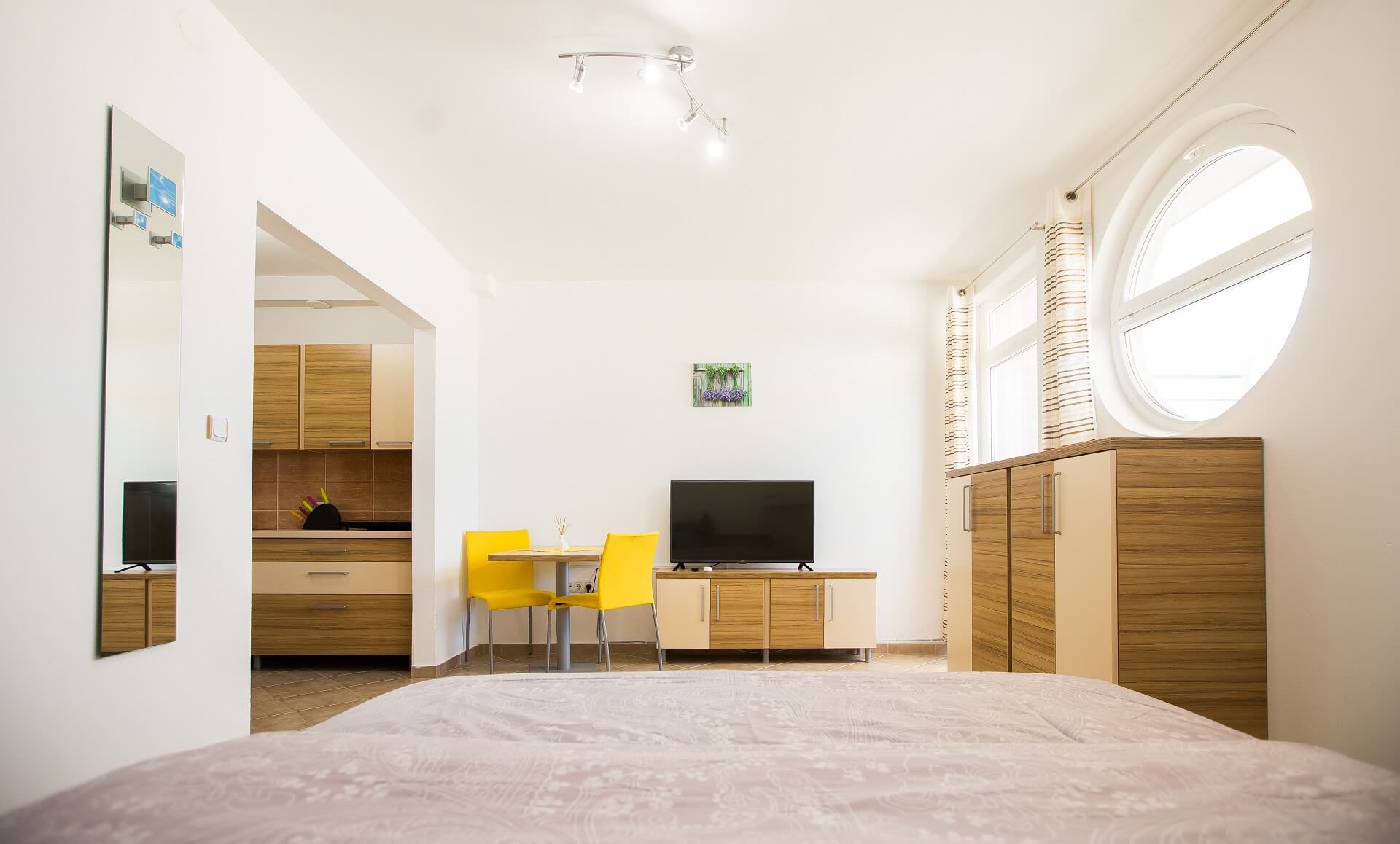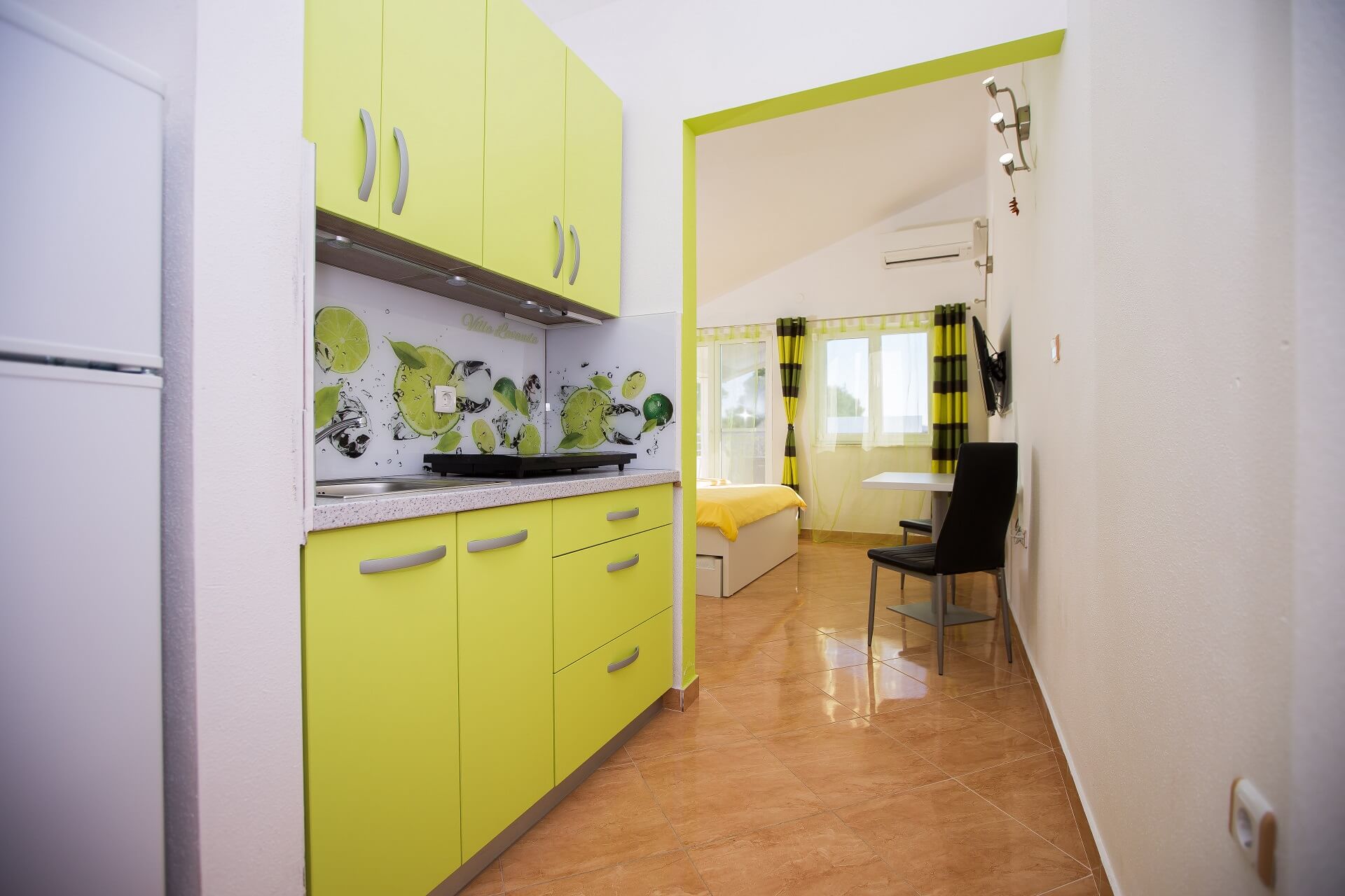 Vsak apartma ima svojo zasebno pokrito teraso s pogledom na morje, kabelski TOTAL TV priključek, brezplačni Wi-Fi, zagotovljeno parkirišče za osebno vozilo.