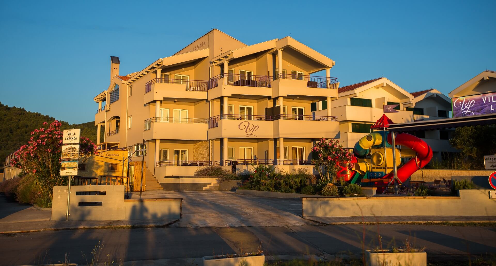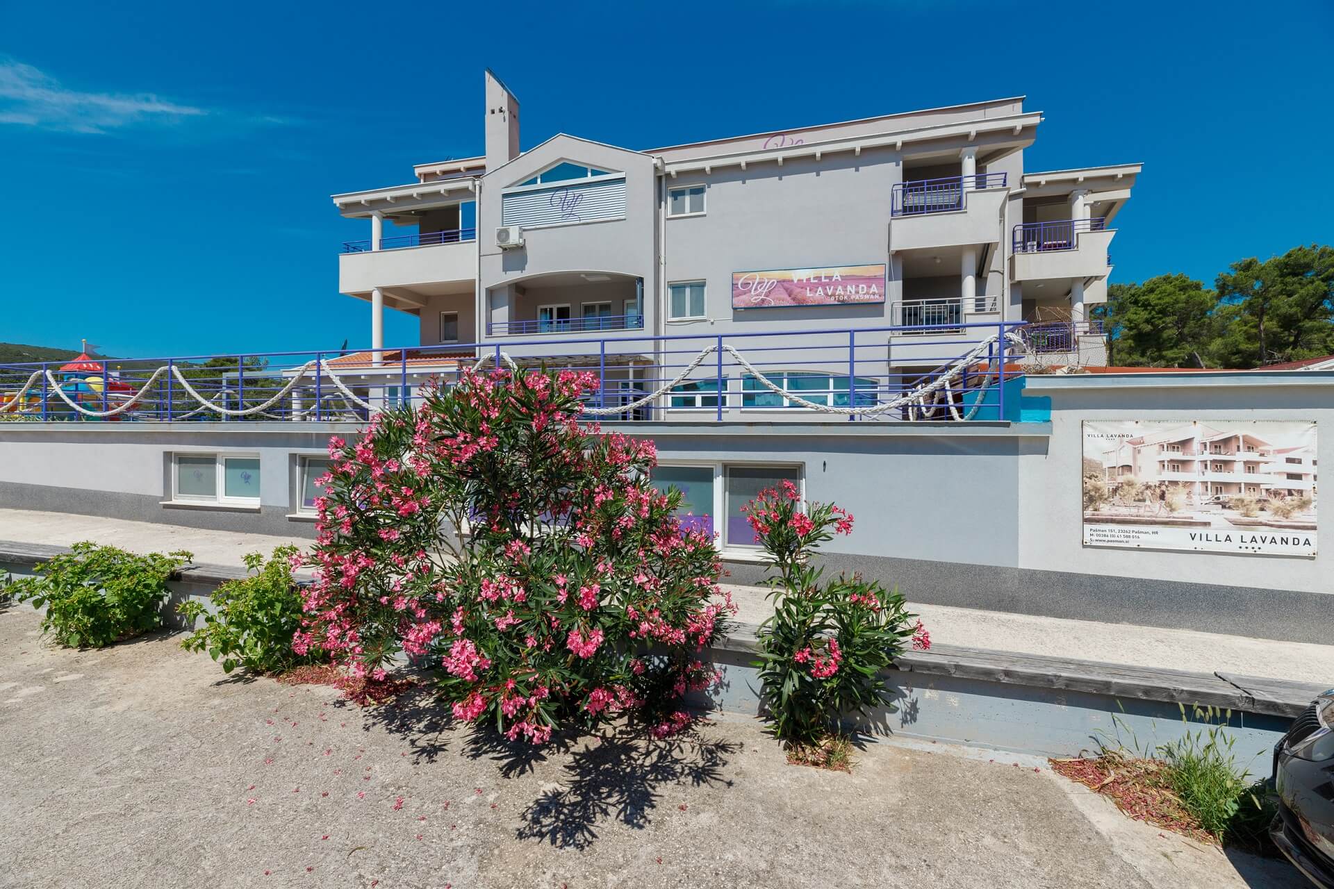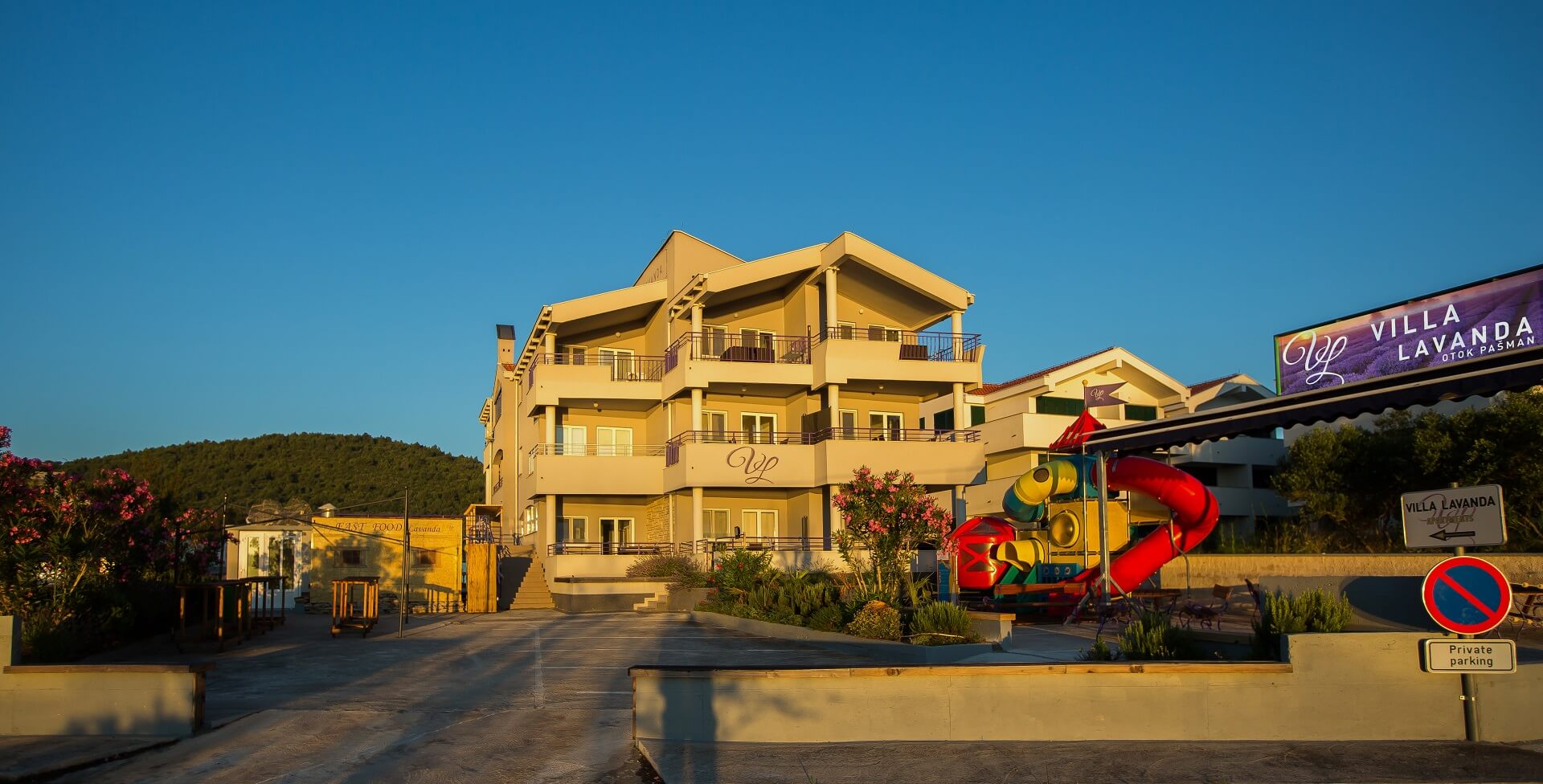 Villa Lavanda z apartmaji je locirana tik ob eni najlepših plaž na Pašmanu – uvali Lućina. S hiše lahko opazujete otroke, ki se igrajo na mivki v plitki vodi. Nastanitev v Villi Lavanda še posebej priporočamo družinam z malimi otroki, saj je med glavno sezono v naši hiši precej otrok in si takoj najdejo družbo, s tem pa razbremenijo oddiha potrebne starše. Na dvorišču so na voljo velika igrala s senco in ročni nogomet, kjer se bodo Vaši otroci tudi lahko brezskrbno igrali, med tem ko boste Vi lahko uporabljali skupni kamin za pripravo okusnega obroka z žara.