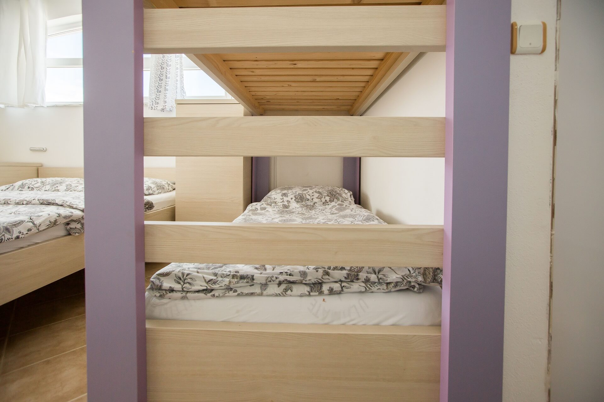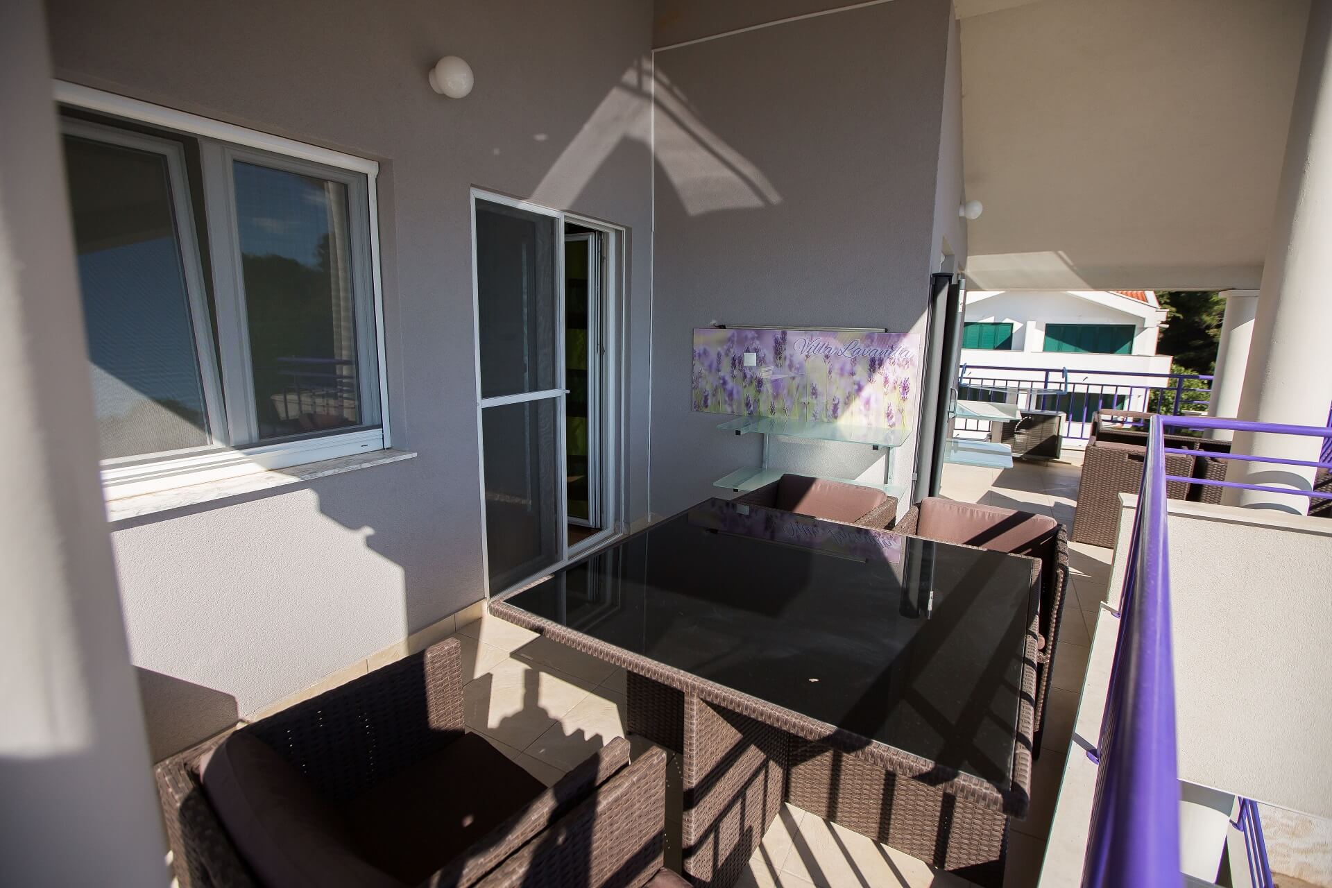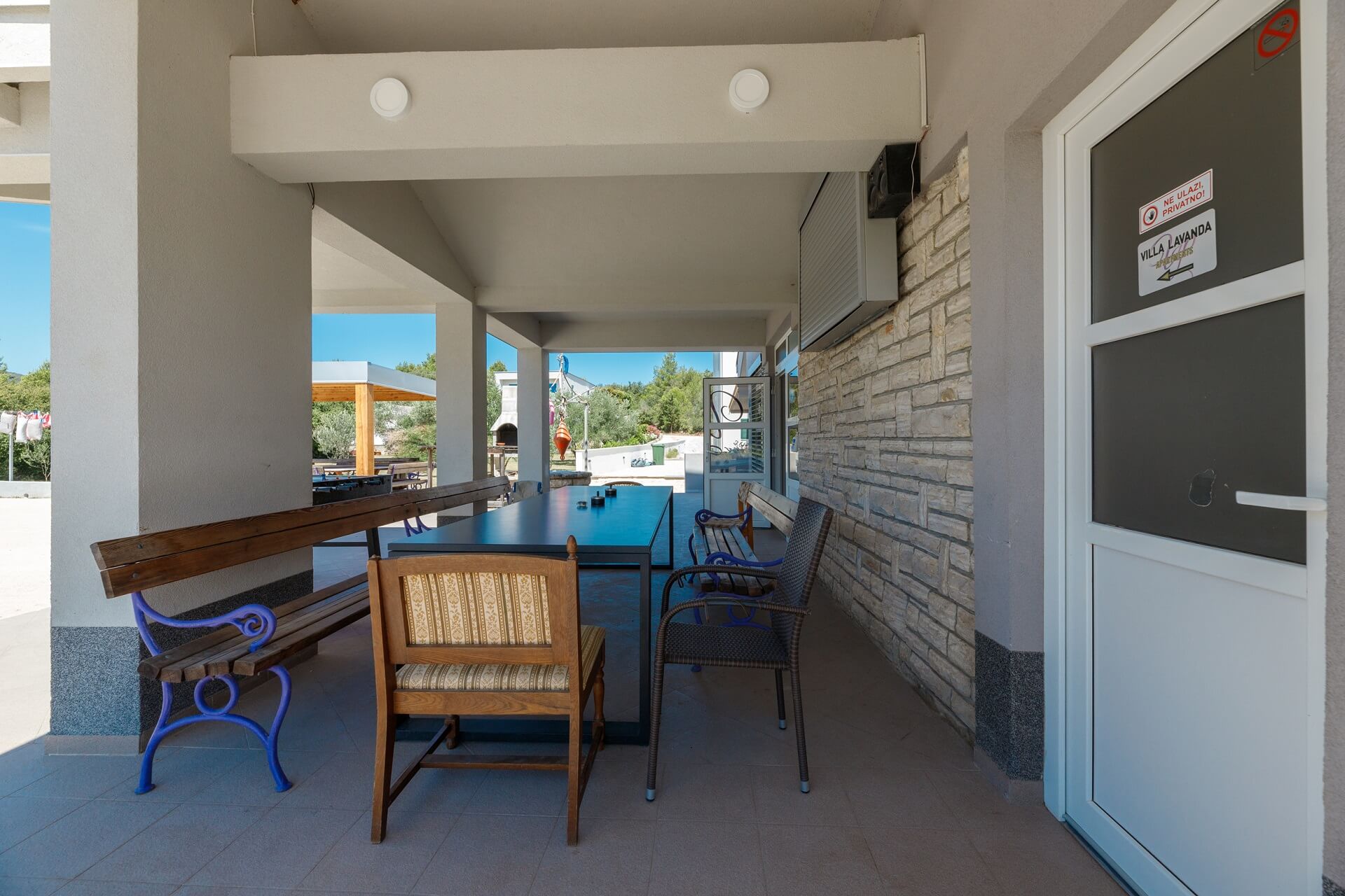 Villa Lavanda z apartmaji je locirana tik ob eni najlepših plaž na Pašmanu – uvali Lućina. S hiše lahko opazujete otroke, ki se igrajo na mivki v plitki vodi. Nastanitev v Villi Lavanda še posebej priporočamo družinam z malimi otroki, saj je med glavno sezono v naši hiši precej otrok in si takoj najdejo družbo, s tem pa razbremenijo oddiha potrebne starše. Na dvorišču so na voljo velika igrala s senco in ročni nogomet, kjer se bodo Vaši otroci tudi lahko brezskrbno igrali, med tem ko boste Vi lahko uporabljali skupni kamin za pripravo okusnega obroka z žara.
