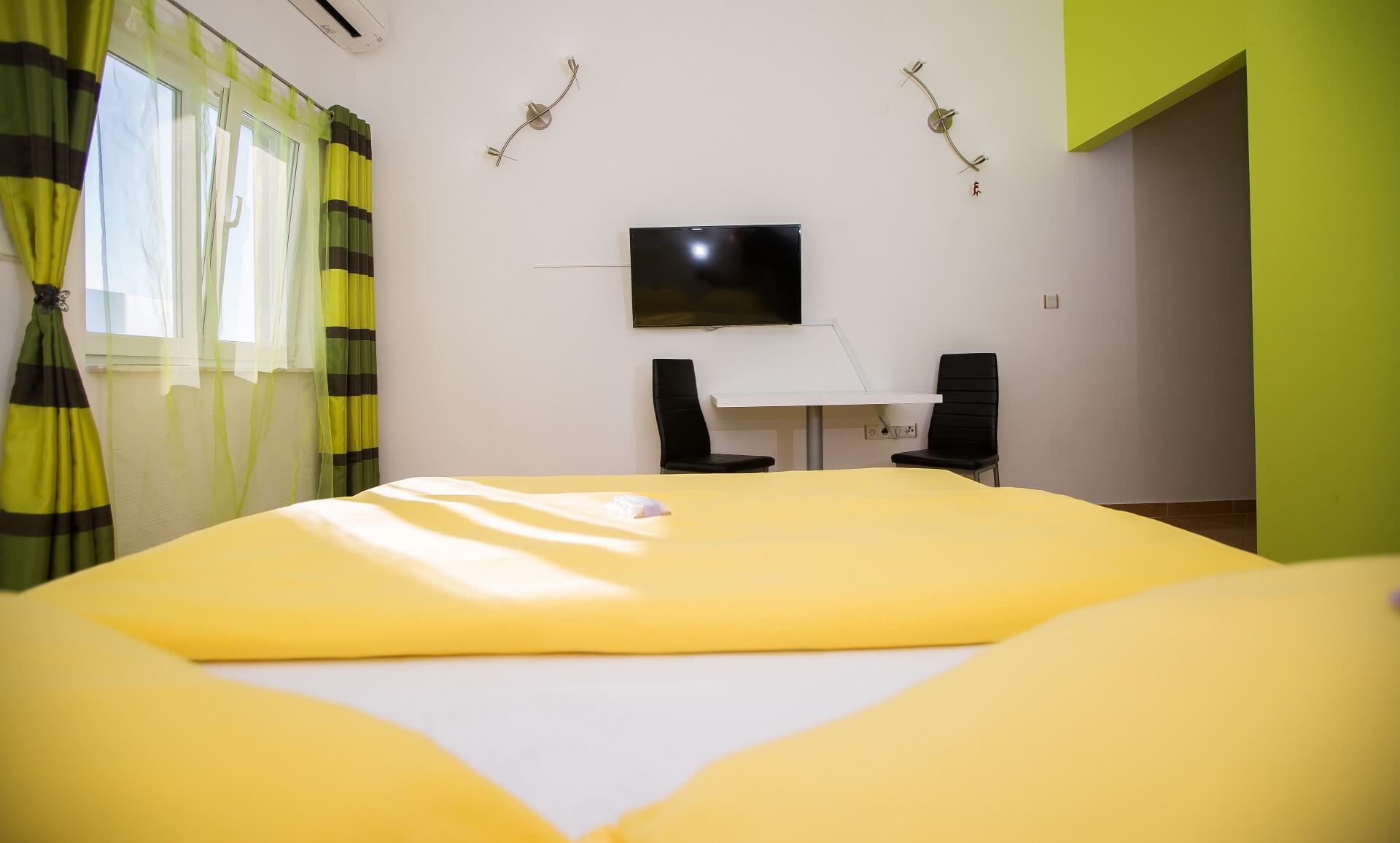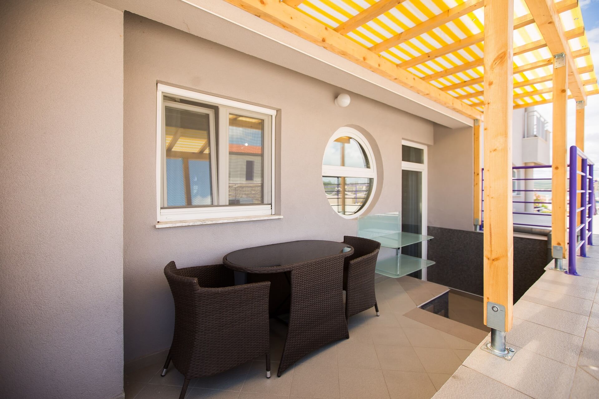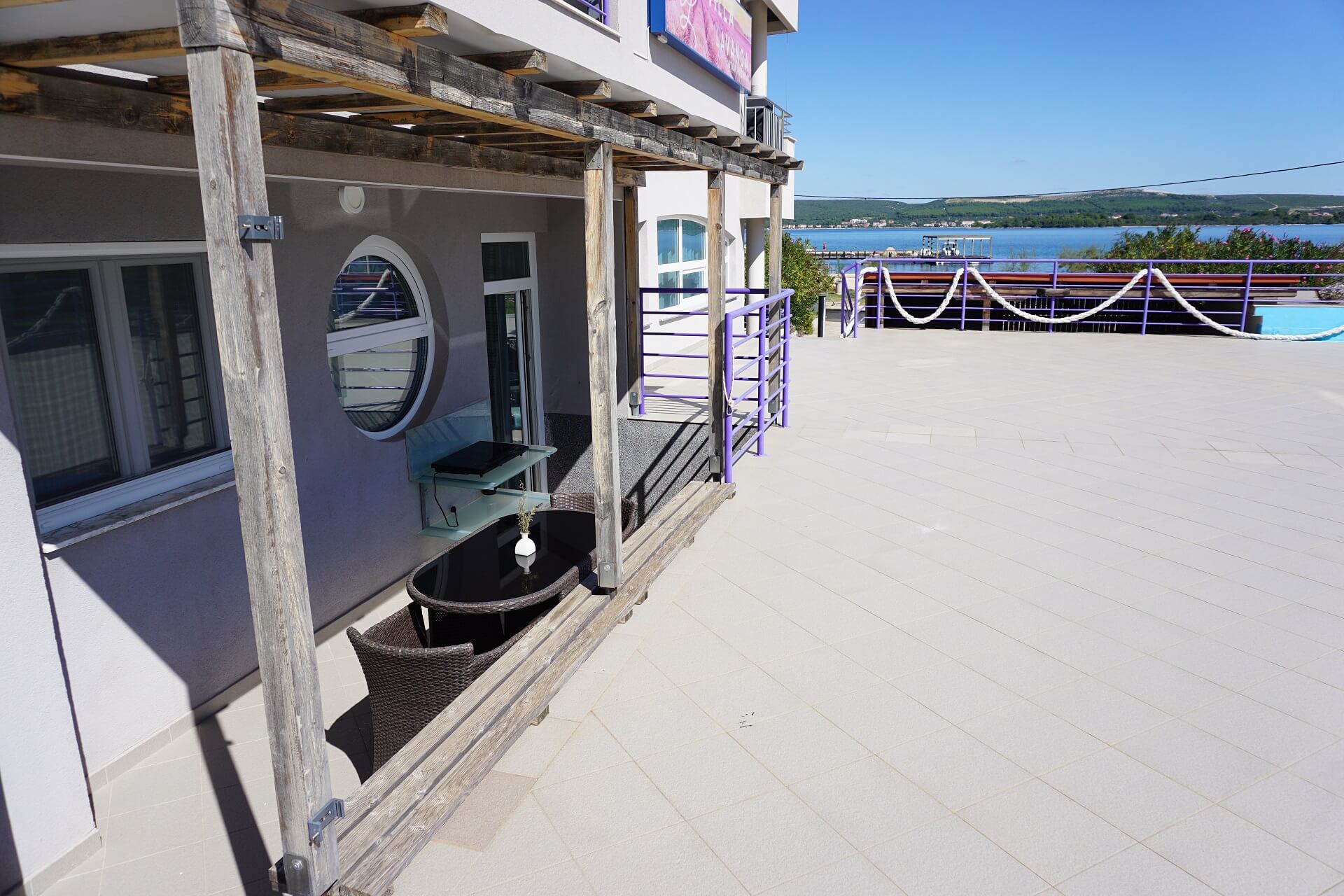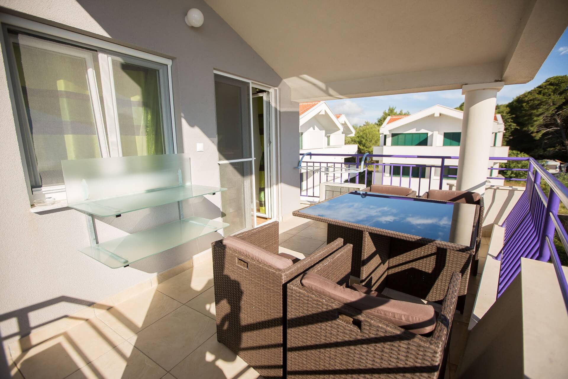 Vsak apartma ima svojo zasebno pokrito teraso s pogledom na morje, kabelski TOTAL TV priključek, brezplačni Wi-Fi, zagotovljeno parkirišče za osebno vozilo.
