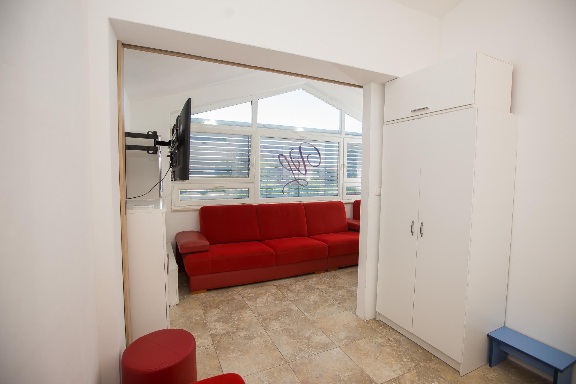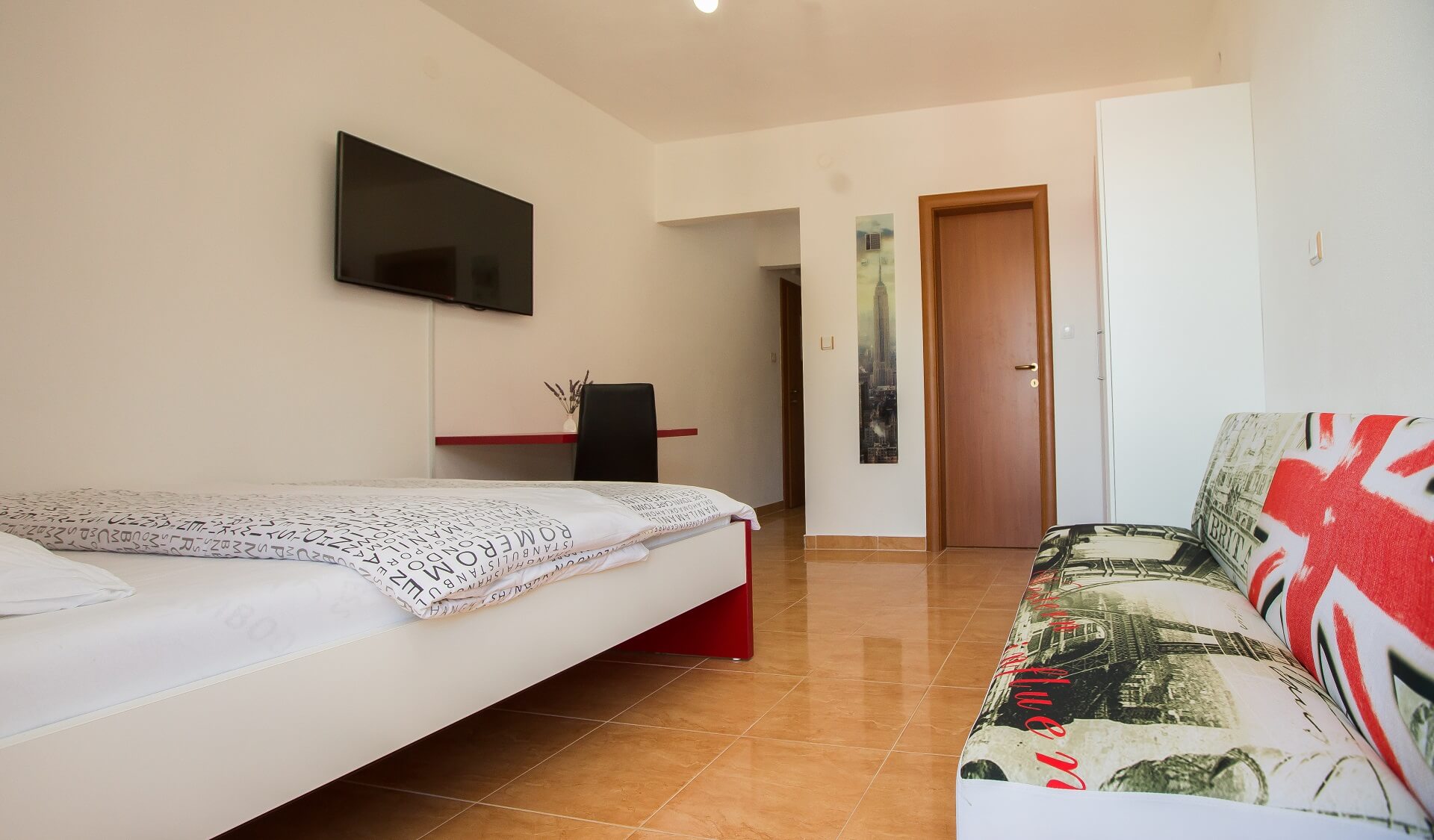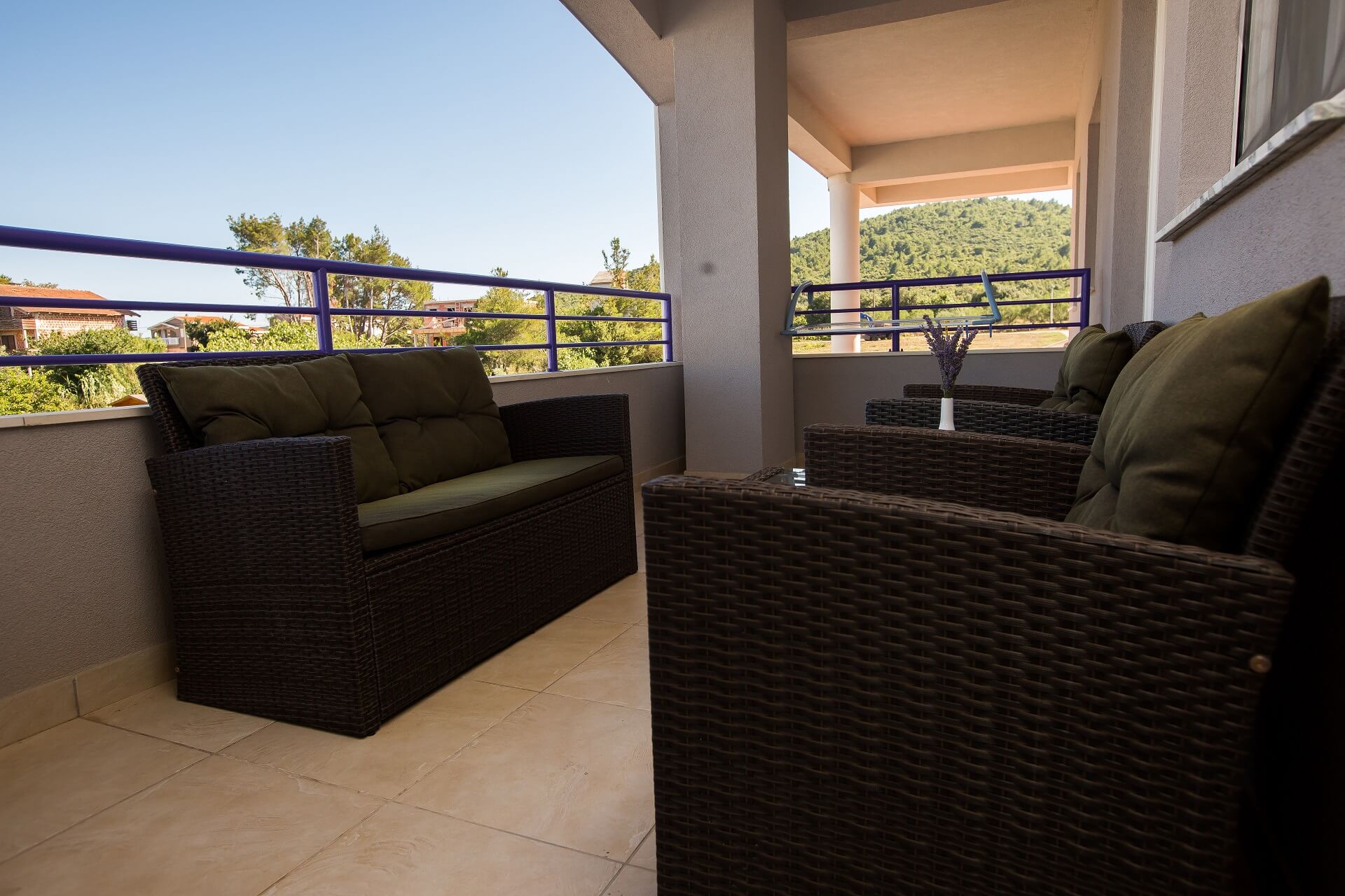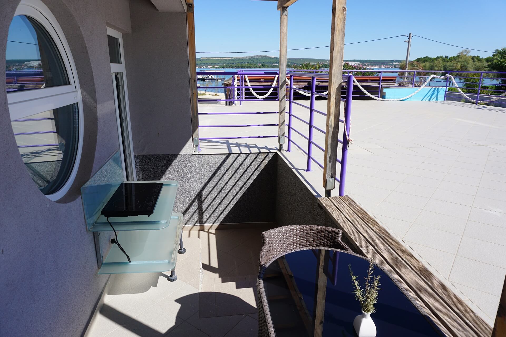 Vsak apartma ima svojo zasebno pokrito teraso s pogledom na morje, kabelski TOTAL TV priključek, brezplačni Wi-Fi, zagotovljeno parkirišče za osebno vozilo.