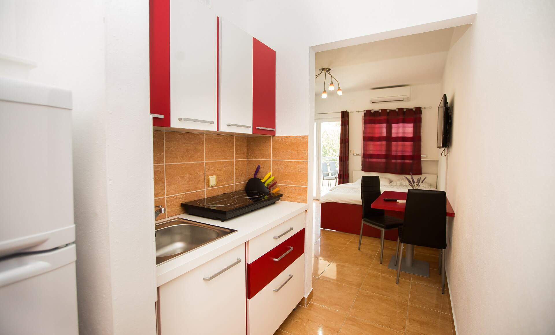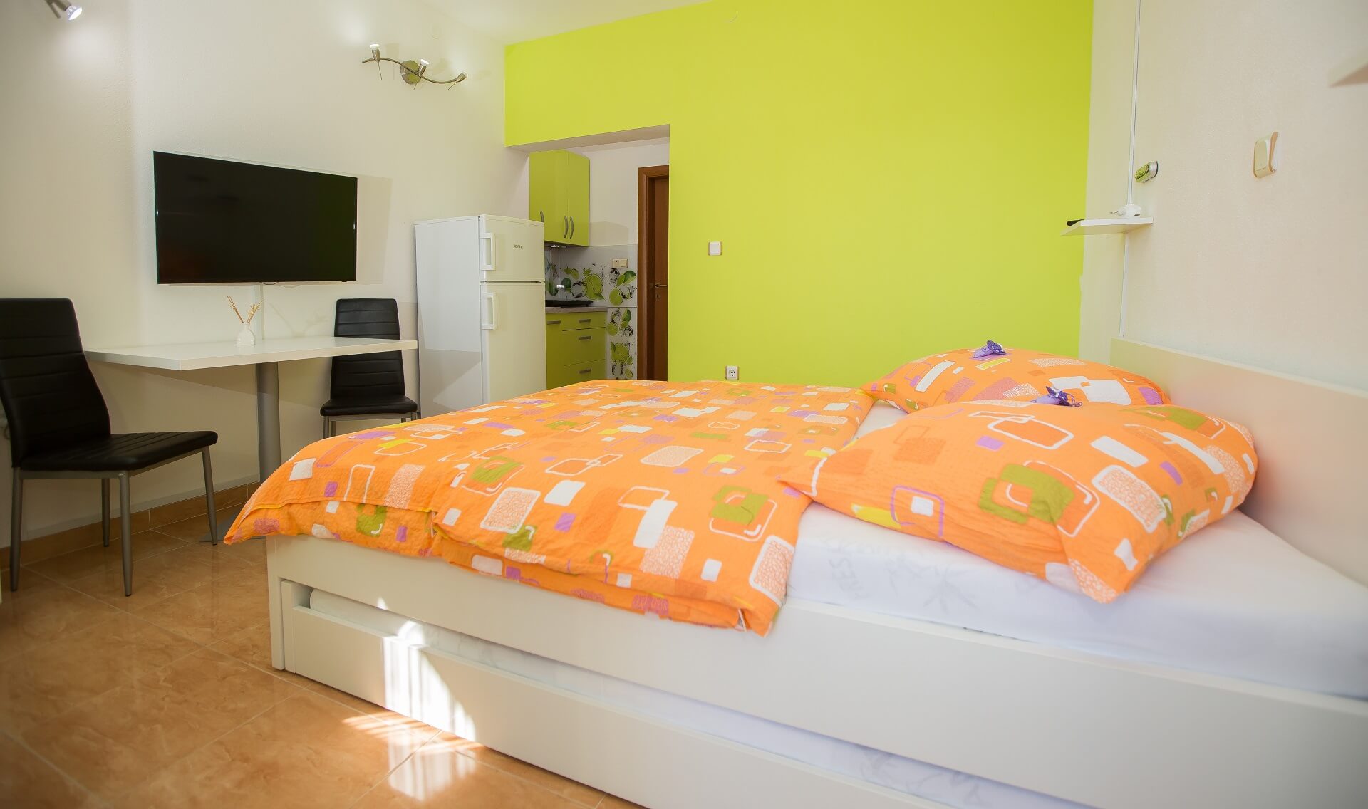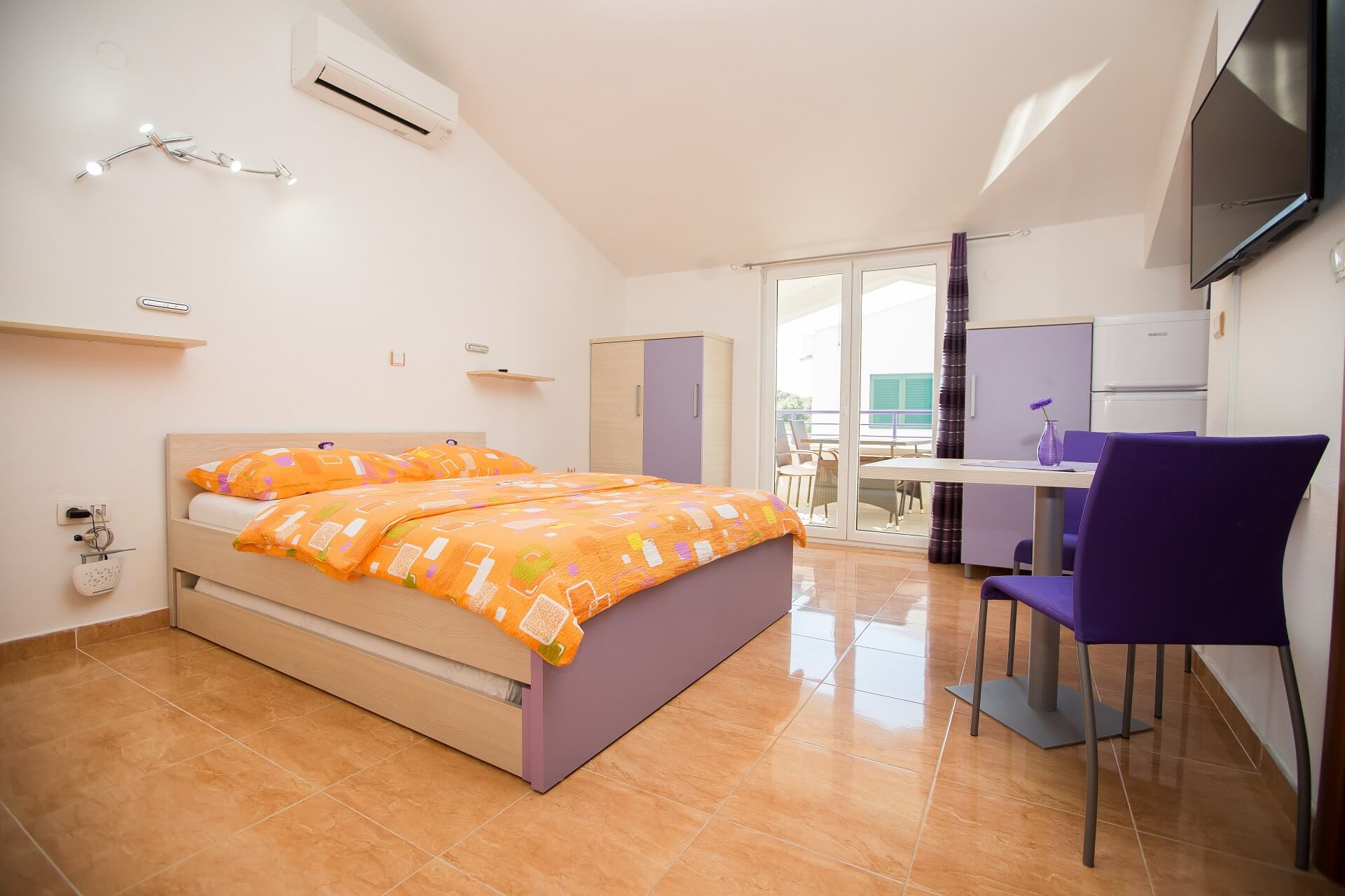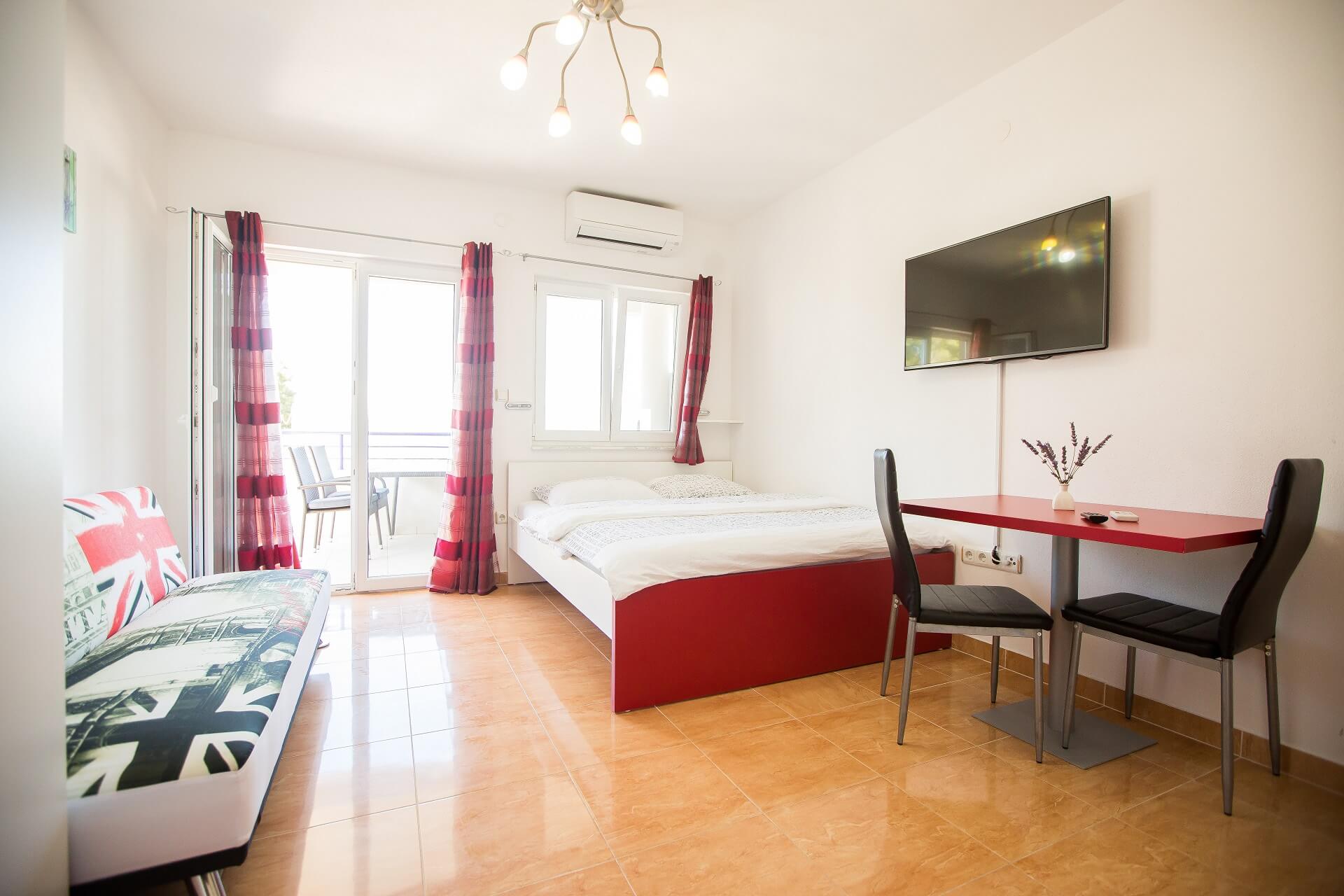 Vsak apartma ima svojo zasebno pokrito teraso s pogledom na morje, kabelski TOTAL TV priključek, brezplačni Wi-Fi, zagotovljeno parkirišče za osebno vozilo.