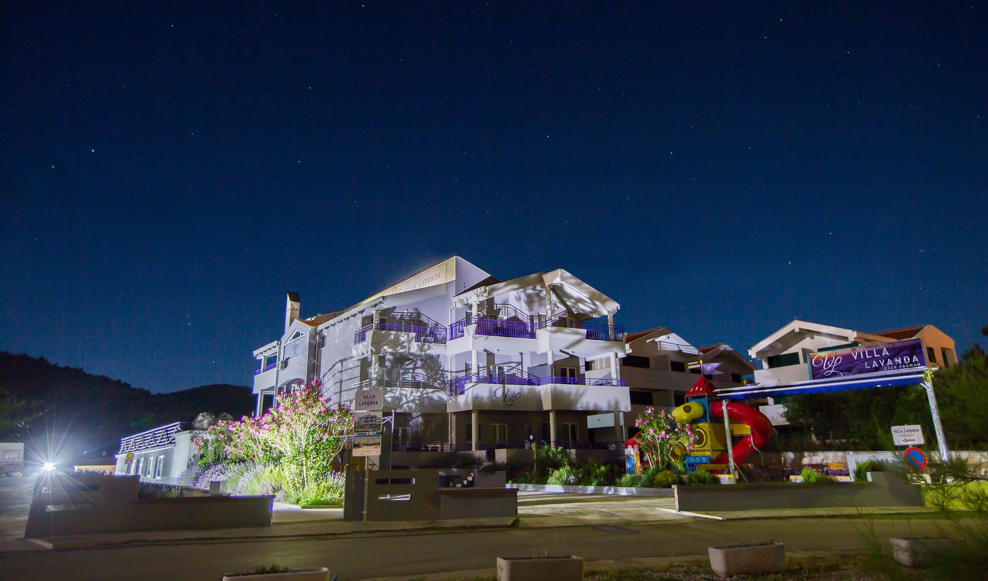 Villa Lavanda z apartmaji je locirana tik ob eni najlepših plaž na Pašmanu – uvali Lućina. S hiše lahko opazujete otroke, ki se igrajo na mivki v plitki vodi. Nastanitev v Villi Lavanda še posebej priporočamo družinam z malimi otroki, saj je med glavno sezono v naši hiši precej otrok in si takoj najdejo družbo, s tem pa razbremenijo oddiha potrebne starše. Na dvorišču so na voljo velika igrala s senco in ročni nogomet, kjer se bodo Vaši otroci tudi lahko brezskrbno igrali, med tem ko boste Vi lahko uporabljali skupni kamin za pripravo okusnega obroka z žara.